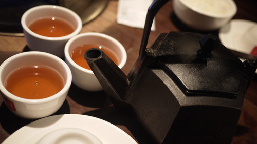 一入座,服務人員立刻幫我們上了熱呼呼的水蜜桃茶,水蜜桃帶有香料味