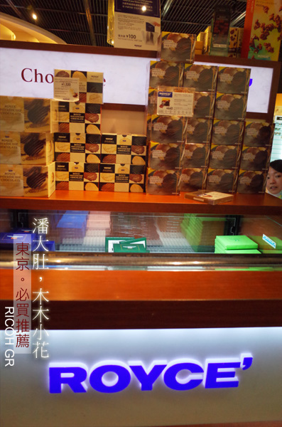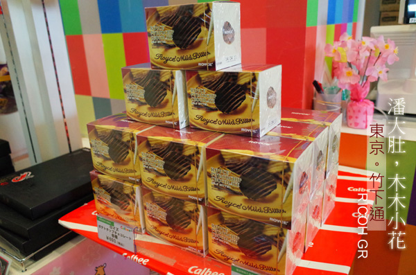 大家知道『ROYCE巧克力洋芋片』嗎!?它不但有現炸的,也有餅乾伴手禮包裝的,跟在台灣很火紅的薯條三兄弟是同一個品牌公司的食品。第一次吃到『ROYCE巧克力洋芋片』的時候,便驚為天人!從此對它思思念念,在台北目前只有遠企有在售販,但是一盒要價五百多元....所以,這次來到東京就是抱著非掃光它不可的決心來的!!!