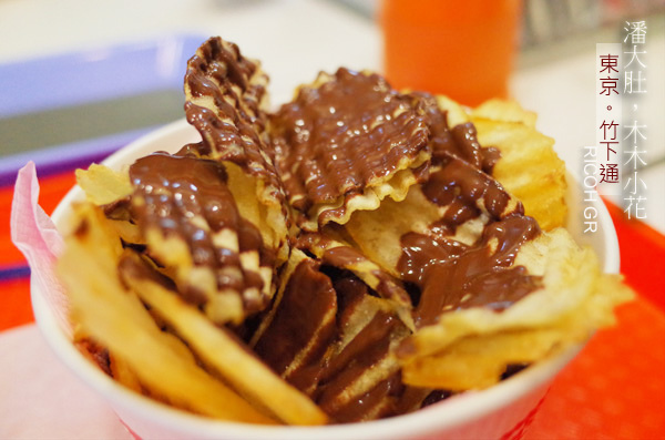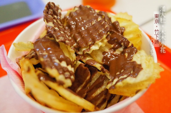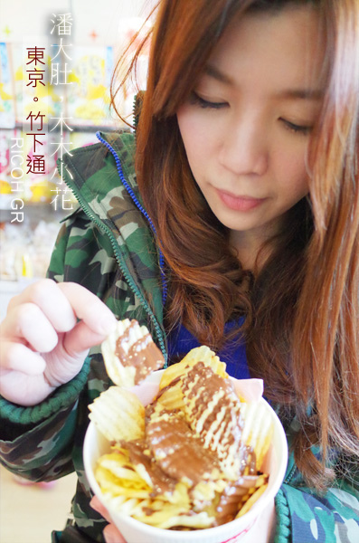潘大肚心想,記得竹下通附近有在賣現炸巧克力洋芋片