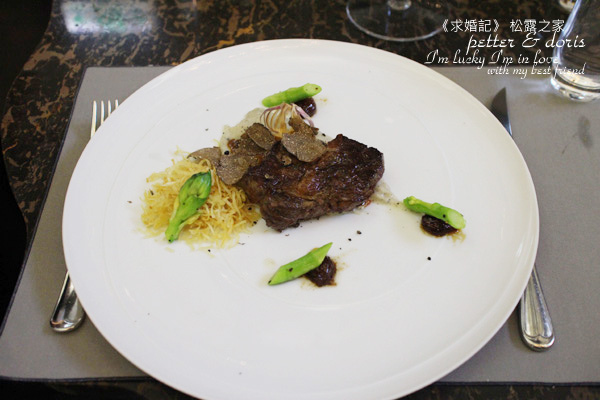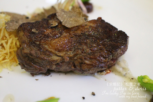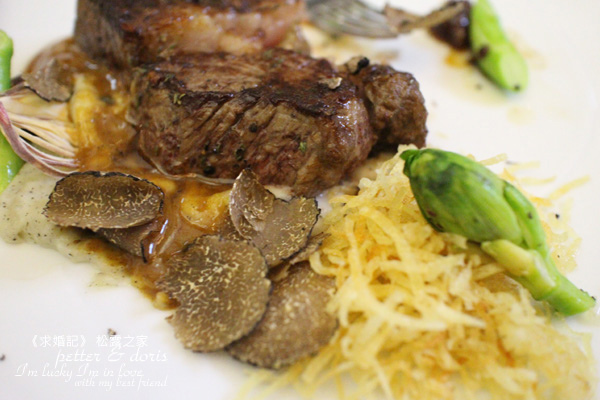 但是,話說回來,牛排上面的是夏松露,它外黑內白,全部都是空運來台的