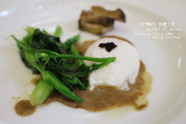 水啵蛋上面是松露,旁邊是芥藍菜