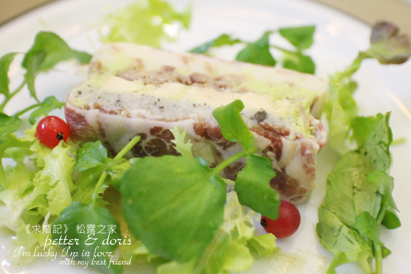 「Coppa 火腿捲松露鴨肝洋芋派 佐青蘋果酸豆油醋」