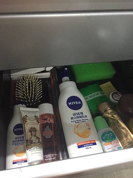 我把「號稱孕婦都能使用的萬能百洛油」和「妮維雅美白乳液」都放在公司